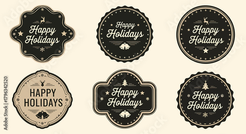 Obraz premium Set of Six Vintage Happy Holidays Badges Labels and Stamps for Winter Season Marketing