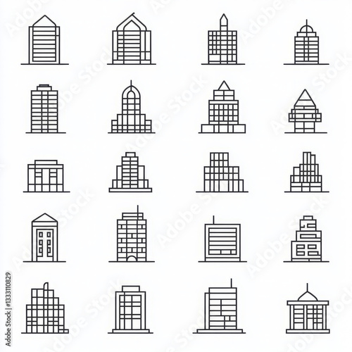 © Asim-Backgrounds, Obraz premium Set of sixteen line art building icons