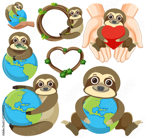 Fototapeta premium Set of sloth cartoon icon