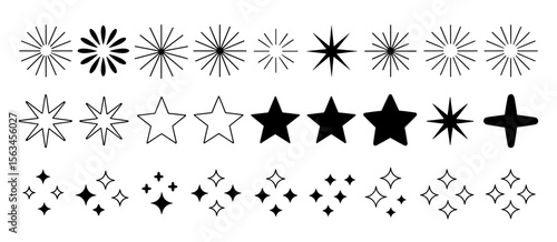 © Priya, Naklejka premium Set of sparkling stars, burst, shine, twinkle, glitter vector elements