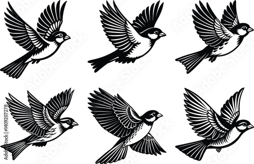 Fototapeta premium set of Sparrow silhouette vector