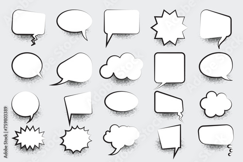 © Vector Vista, Obraz premium Set of speech bubbles. Blank empty vector white speech bubbles. Speak bubble text, cartoon chatting box, message box. Blank Comic bubble. Cartoon balloon word design.