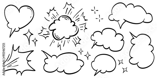 Naklejka premium Set of speech bubbles. speech bubbles chat comic. doodle element comic cloud. vector illustration
