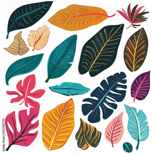 © DLC Studio, Obraz premium Set of spring leaves, Vector illustration
