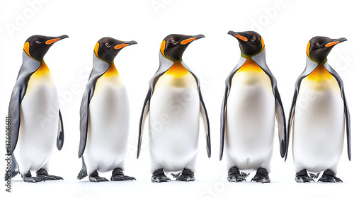 © Martinesku, Fototapeta premium Set of standing King Penguins isolated on the white background.