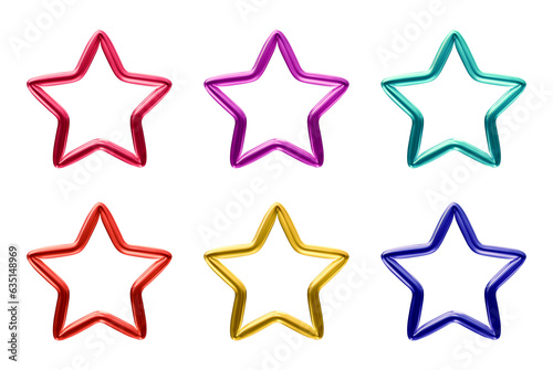 © Graphicyano8, Obraz premium Set of star shape icon symbol isolated on transparent background in 3d rendering.