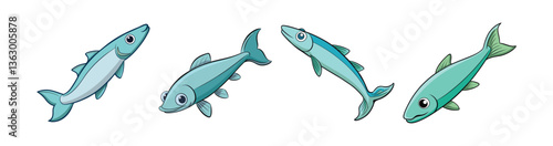 Fototapeta premium Set of Stunning Illustration of Ghost Knife Fish in Motion