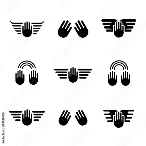 © Vector, Fototapeta premium Set of stylized hands with wings and rainbow elements