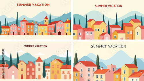 Fototapeta premium Set of summer nature landscape poster, web banner, and a cover card.