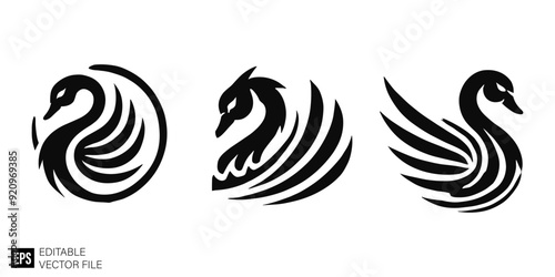 Obraz premium set of swan logo Illustrations Clip Art Graphic Design Elements Black and...