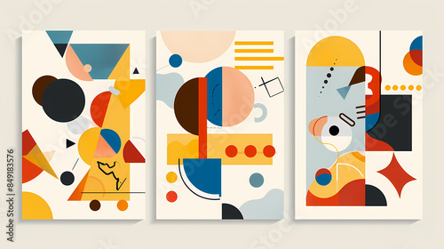 Fototapeta premium Set Of Swiss Design Inspired Background Vector Illustration. Cool Geometric...