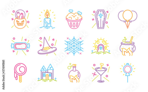 © djvstock, Fototapeta premium set of symbols in neon light for halloween