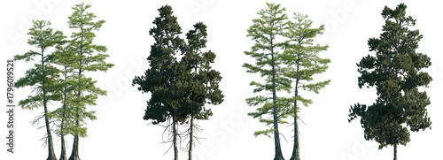 © Viktoria, Obraz premium Set of 2 Taxodium ascendens and 2 Pinus cembra frontal set trees isolated png on a transparent background perfectly cutout