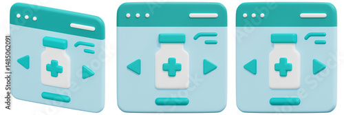 © Flowicon, Fototapeta premium Set of Teal and White 3D Website Interface Design for Online Pharmacy 3d Render Icon Illustration
