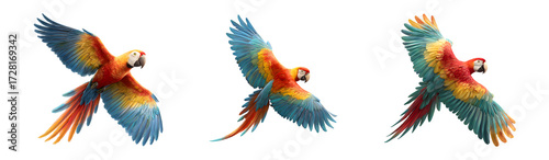 © Syauqiya, Obraz premium Set of three colorful macaw parrots in flight.