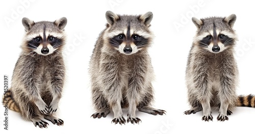© BersyukurStock, Obraz premium set of three different raccoons on a white background