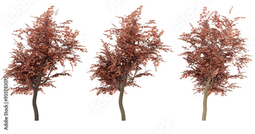 Fototapeta premium Set of three dried pampas grass stalks with a brown, terracotta color.