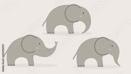 © donichevaa, Fototapeta premium Set of three elephants on a light gray background