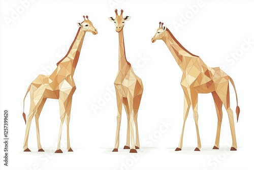 Naklejka premium Set of three full body illustration of a tall giraffes standing on a white...