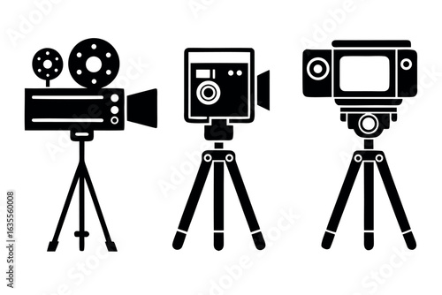 Obraz premium Set of three minimalist black vector icons on a clean white background