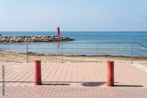 © Roberto, Obraz premium Set of three red posts in symmetrical composition