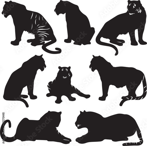 © Qurban Vector & Ai, Naklejka premium Set of Tiger silhouettes on white background