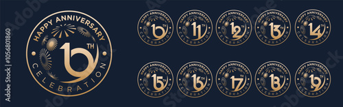 © gemilang, Naklejka premium set of 10 to 19th anniversary logotype design, with golden fireworks for celebration event, wedding, and birthday, vector illustration