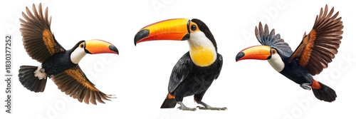 © Tatiana, Obraz premium Set of Toucan Isolated on Transparent Background. PNG
