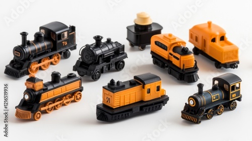 © Stocker, Fototapeta premium Set of toy trains isolated on white background. Generative AI