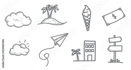 © Hand Drawn Icon, Fototapeta premium Set of travel journey element doodle hand drawn style vector.