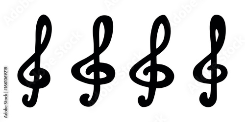 © Daria Shane, Fototapeta premium Set of treble clef doodle. Hand drawn musical symbol. Single element for print, web, design, decor, logo