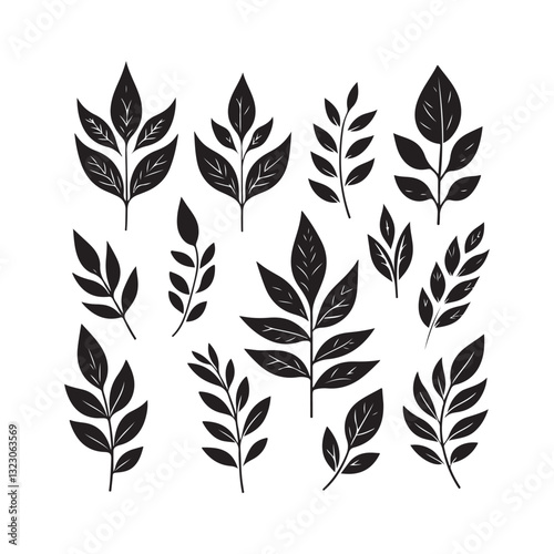 © Zakir, Fototapeta premium Set of tree leaves silhouette vector illustration on white background.