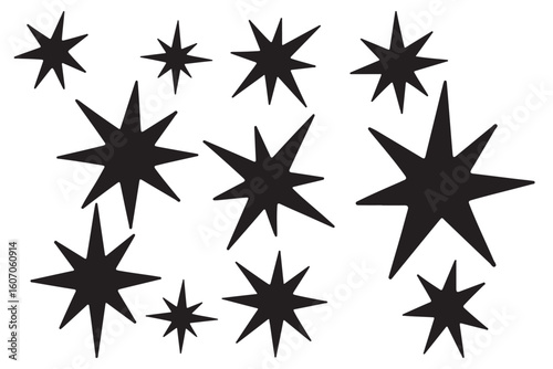 © Daishin, Fototapeta premium Set of trendy irregular black stars. Simple funky groovy abstract shapes.