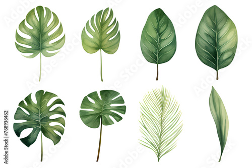 Fototapeta premium Set of tropical leaves, vector, watercolor, variety, ornamental, transparent background