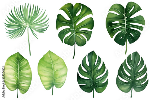 © WITCHA, Fototapeta premium Set of tropical vector leaves. Variety. Ornamental plants. White background ,Generative AI