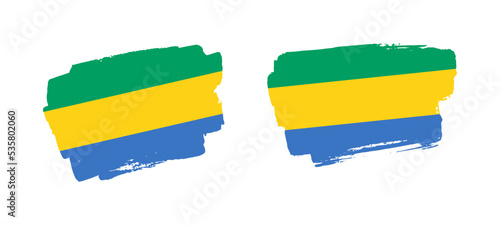 Obraz premium Set of two hand painted Gabon brush flag illustration on solid background