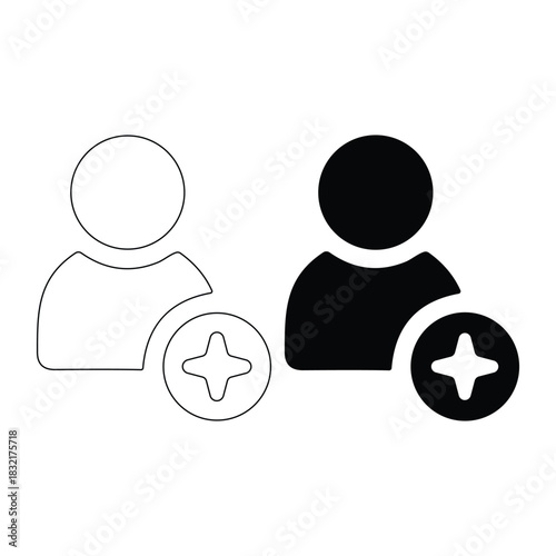 © Azgor, Obraz premium Set of two money icons, one outline and one filled, showing stacks of coin and money bag with dollar sign, isolated on white background