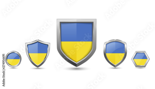 © 4luck, Fototapeta premium Set of ukraine country flag with shape shield