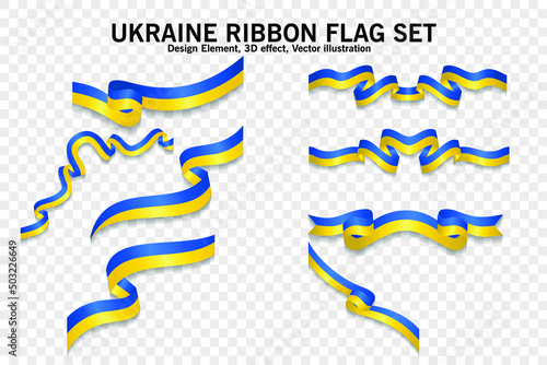 © vector Art, Obraz premium Set of Ukraine Ribbon flags, design element. 3D on a transparent background. vector illustration