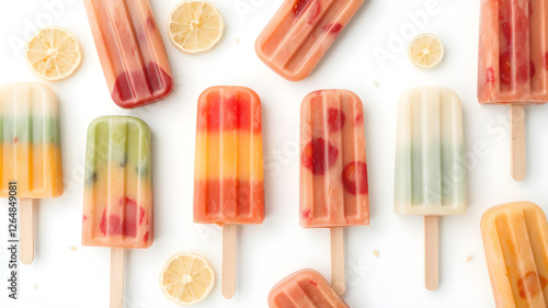 © Qrryferry, Obraz premium Set of unique colorful summer popsicles isolated on a white background