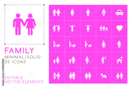 © treter, Fototapeta premium Set of 25 Universal Family Icons on Color Background . Isolated Elements