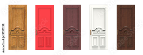© ladybirdanna, Fototapeta premium Set of various wooden doors. 3d illustration isolated on white background