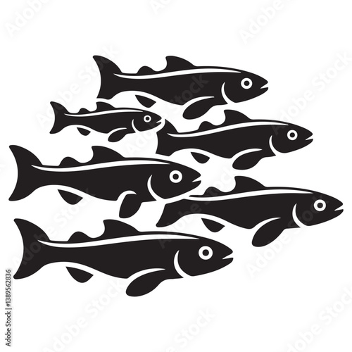 Fototapeta premium Set of Vector Black silhouette flock of fish. Element for your design. Logo template. with white background