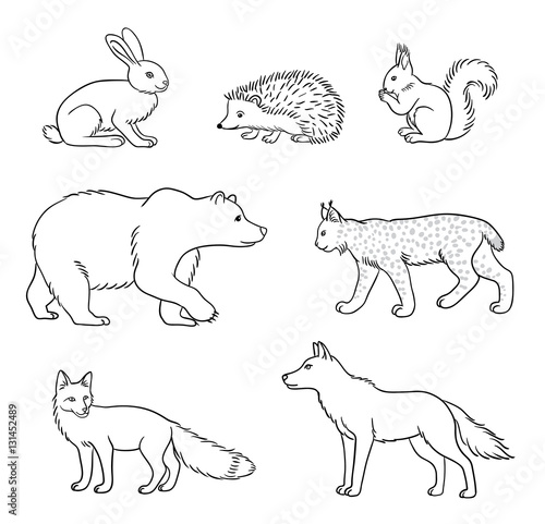 © rosinka, Naklejka premium Set of vector forest animals in contours