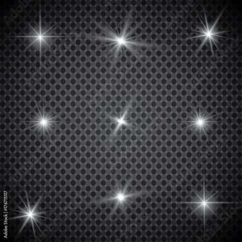 Fototapeta premium Set of Vector glowing light effect stars bursts with sparkles on transparent...