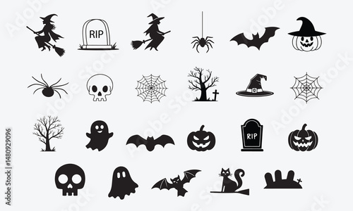 © Sajab Hossain, Naklejka premium set of vector icons for Halloween Icon. Set of Line and Silhouette Vector Style on White Background