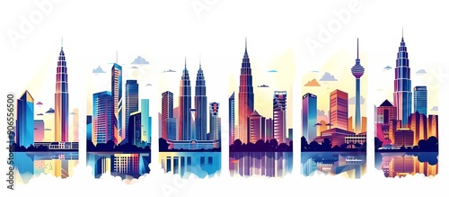 © KBL Sungkid, Obraz premium set of vector illustrations, trendy retro pop art poster style with different cityscapes featuring the allure tower in kuala lumpur cityscape