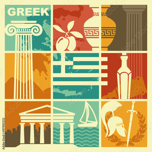 © Katsiaryna, Fototapeta premium Set of vector images on the theme of Greece