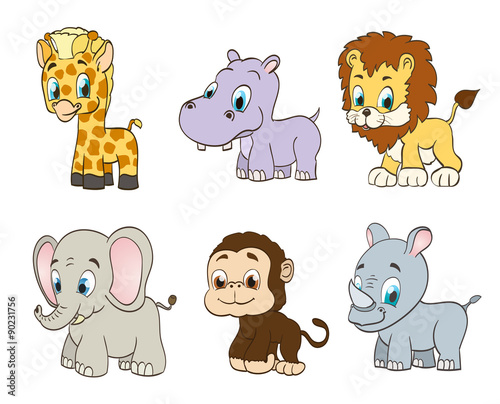 © flowerstock, Naklejka premium set of vector jungle cartoon animals. vector