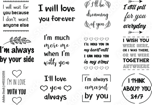 Fototapeta premium Set of vector quotes about love and Romantic feeling. Design elements for...